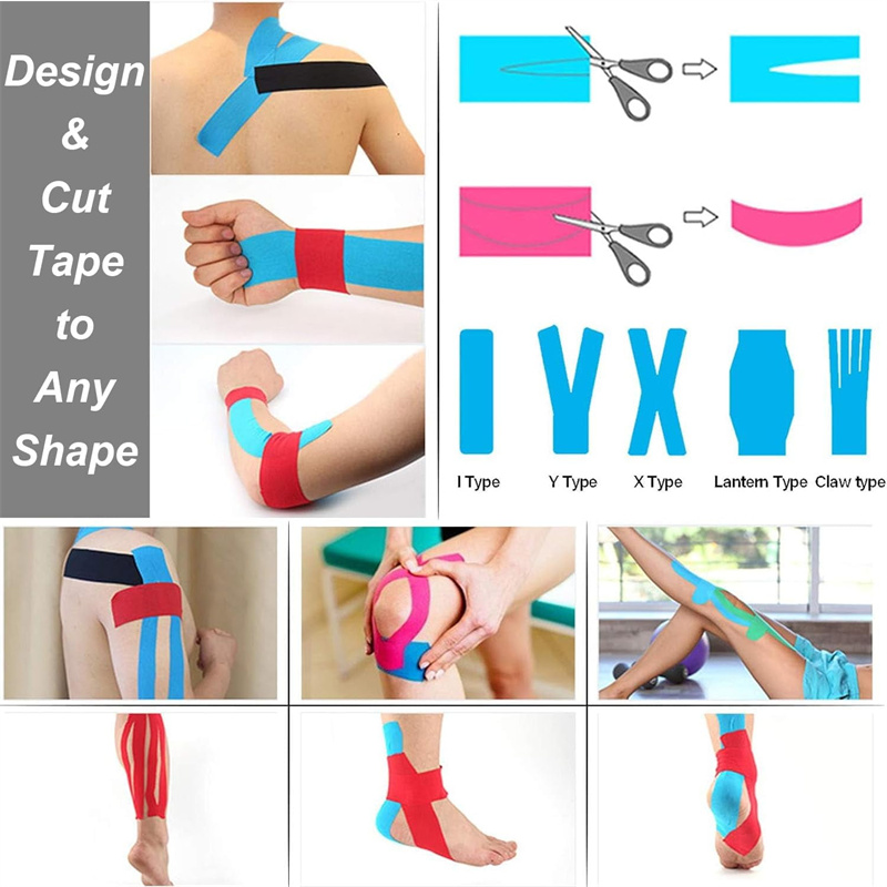 - Спорт и фитнес: удобная поддержка во время тренировок и соревнований; техники тейпирования плеч, коленей, лодыжек и спины.